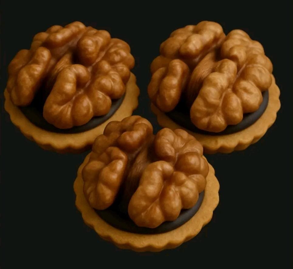 Un sablé fin et doré, nappé de chocolat noir fondant et couronné d’une noix entière. Une création élégante aux notes intenses, mêlant la force du chocolat à la richesse des fruits secs. Pour les amateurs de douceurs au caractère affirmé.